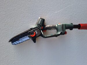 | Hochentaster ▪ Geräuscharm und damit gut geeignet im hausnahen Bereich ▪ Besonders geeignet für den Rückschnitt von kräftigen Hecken ▪ Ergonomisches und komfortables Arbeiten dank Softgriff ▪ Elektro-Modell mit sehr leistungsstarkem Motor ▪ Schwertlänge 30 cm ▪ Gesamtlänge 2,1 m ▪ Leistungsaufnahme 1,4 kWh ▪ Gewicht 5,4 kg | ![]() | freiwillige Spende | Herr Flemisch, Grafing |